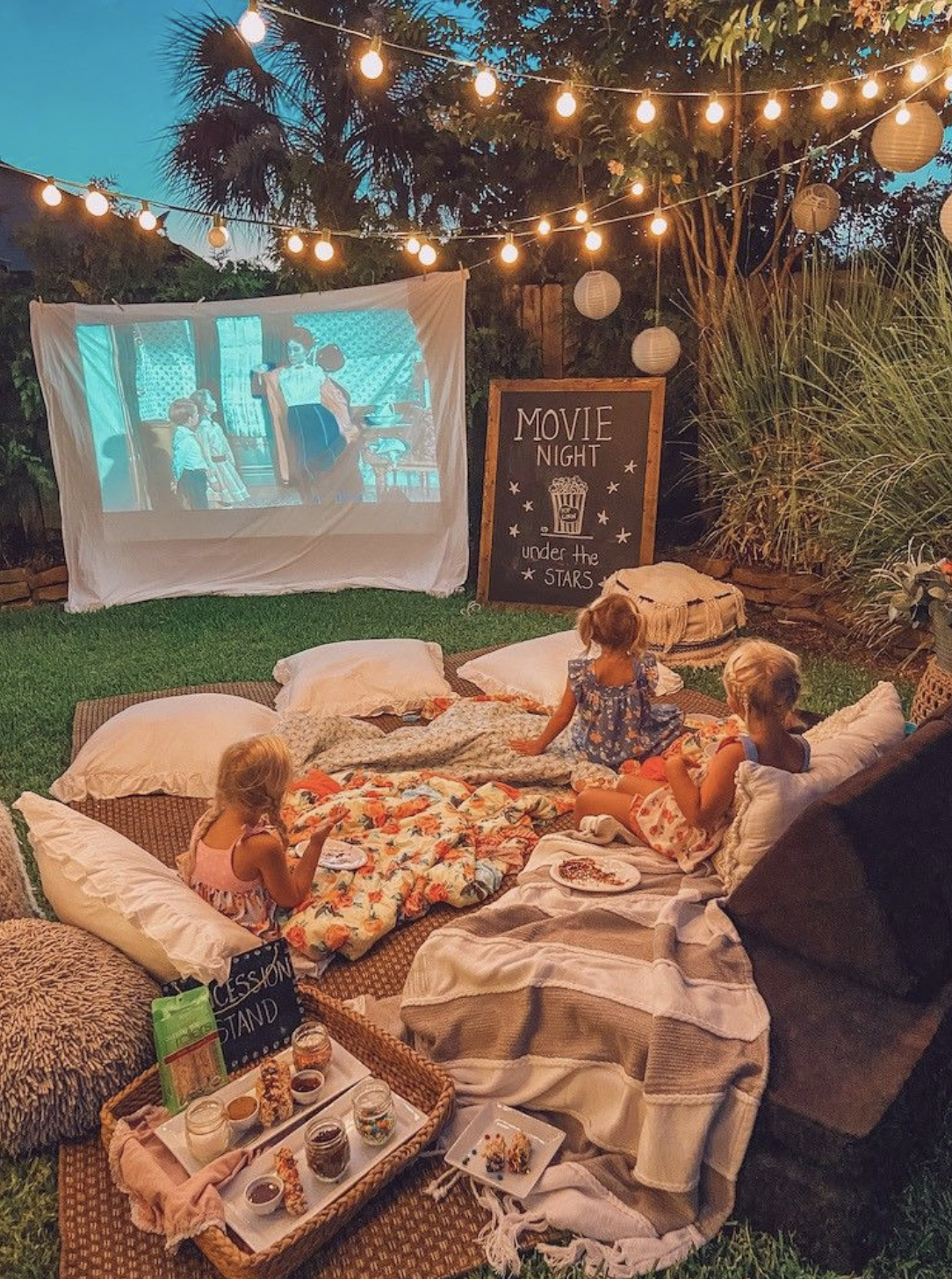 Projectors range from $150-$1000, and screens from $100-$200. The screen can be rolled up when not in use, and left outside for years without issue. And depending on your setup, you may not even need a screen. If there’s a big, blank wall, you can often just use that.
