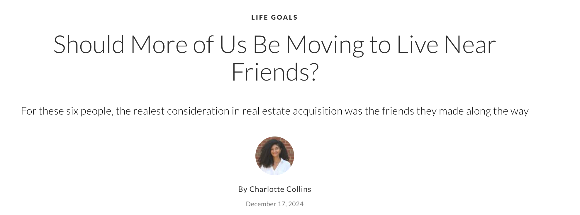 Charlotte Collins from Architectural Digest wrote a thoughtful piece on the “living near friends” movement.