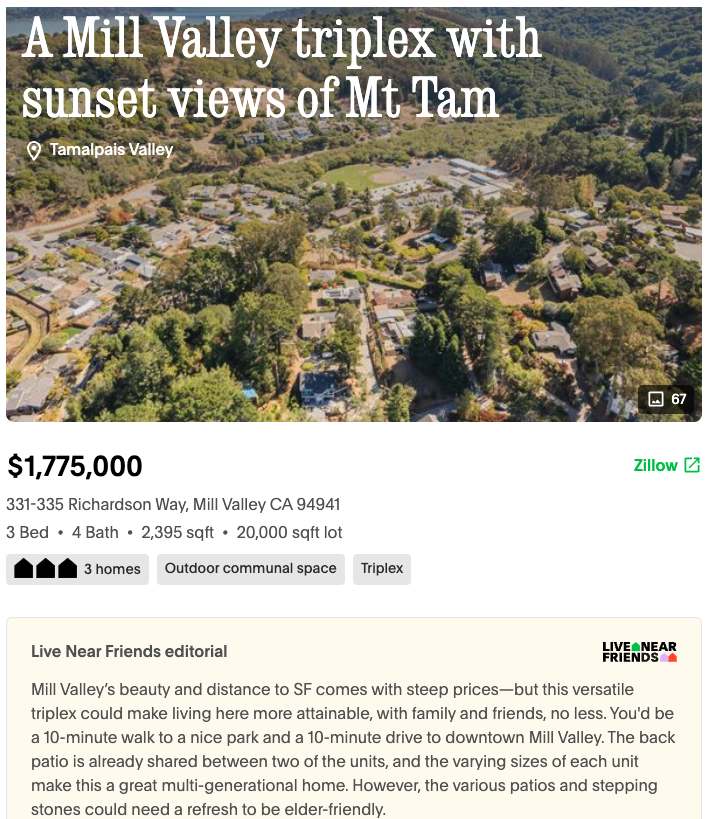 Ways to live (somewhat) affordably in Marin, such as this triplex in Mill Valley: