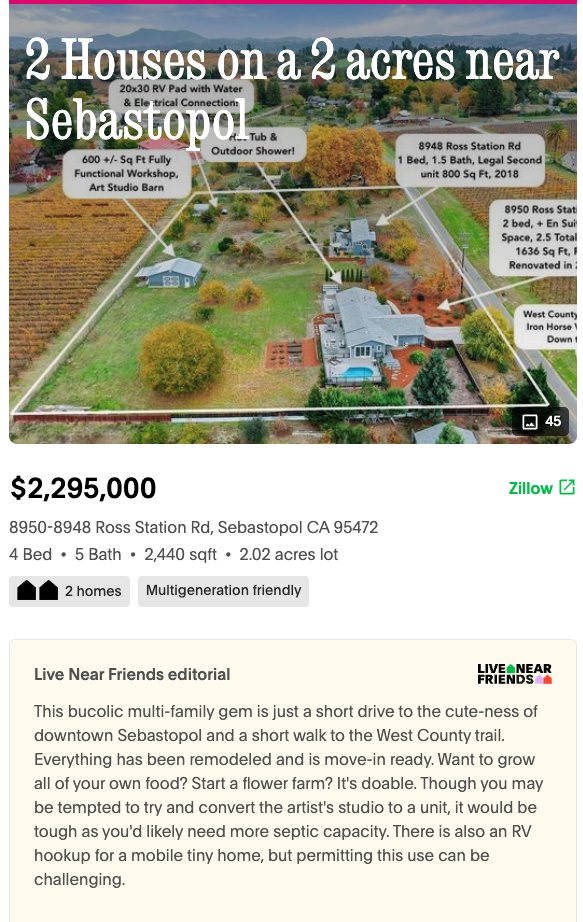 Bigger properties with room to grow up in Sonoma county, including this ready-to-go compound near Sebastopol.