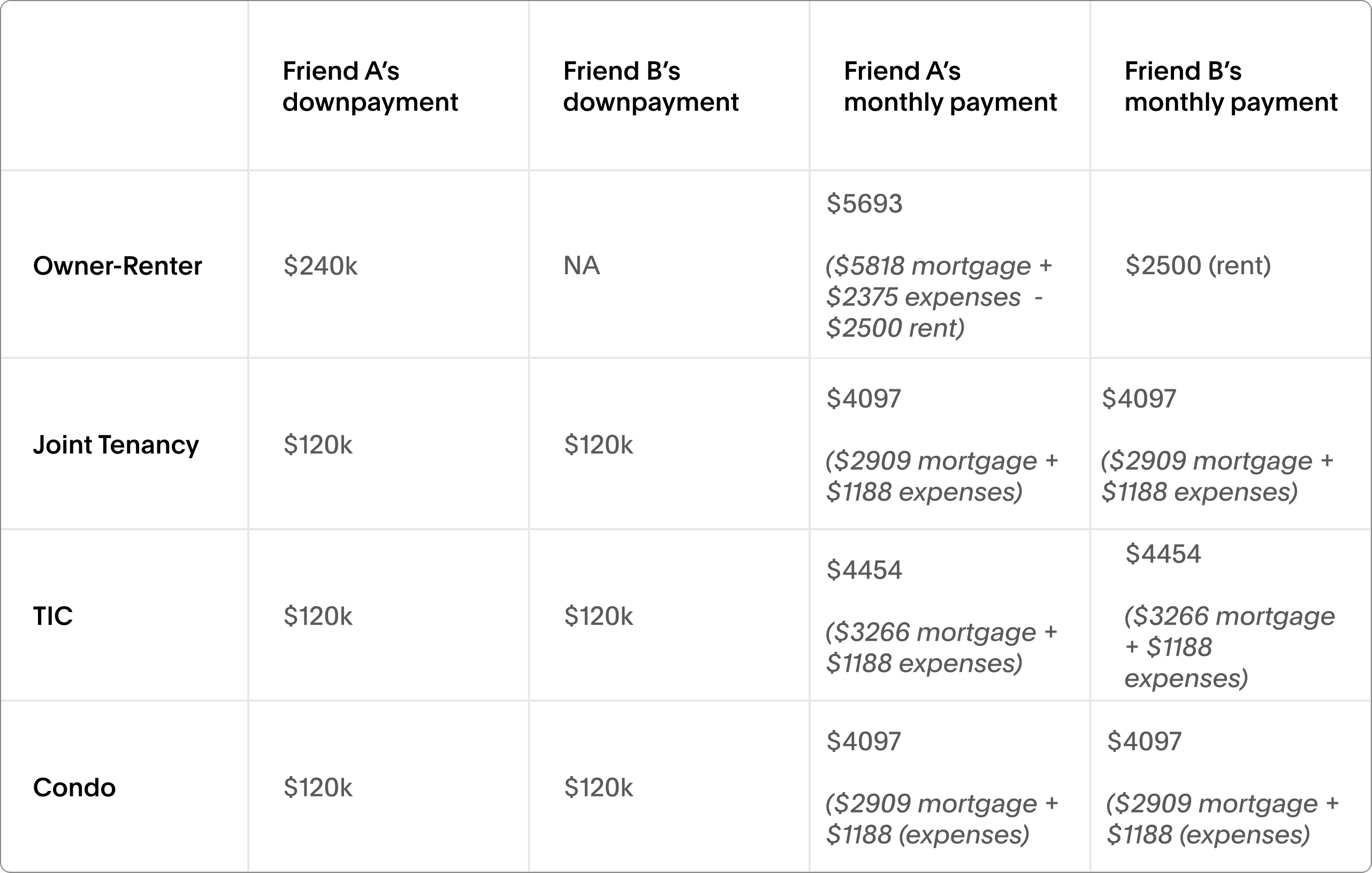Here are the most common ways we see friends own a duplex: