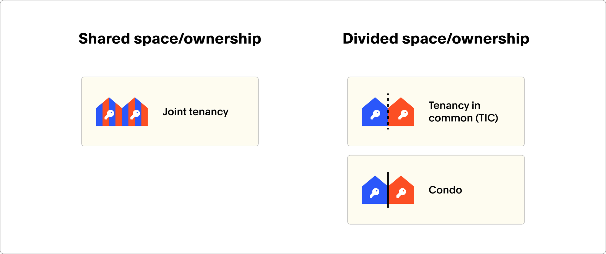 • Share the space and ownership equally - like a married couple (joint tenancy)